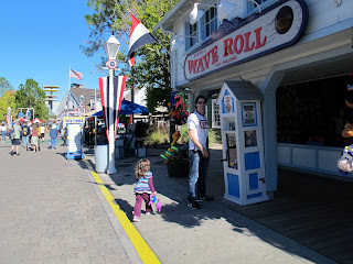 Fenomenal, e foi muuuito bom ir com o Mauro nessa montanha russa, foi a primeira vez que fomos juntos. Já adoro o filme, e a atração é demais mesmo! Do lado de fora tinha um cara fantasiado com pernas de pau que ficava assustando o pessoal, muito engraçado. Almoçamos no Louie’s Italian Restaurant e tava gostoso. Depois, ficamos passeando um pouco por Amityville e tomamos um sorvete daqueles de bolinhas pequenininhas, o Dippin’ Dots Ice Cream – http://www.dippindots.com/ (a mãe e a Rô viram o meu e do Mauro, que dividimos um pequeno, e foram comprar sozinhas, e de novo foram respondendo Yes Yes e voltaram cada uma com um pote grande!). Enquanto elas tentavam em vão comer aquilo tudo, o Mauro saiu pra fazer as moedinhas dele.