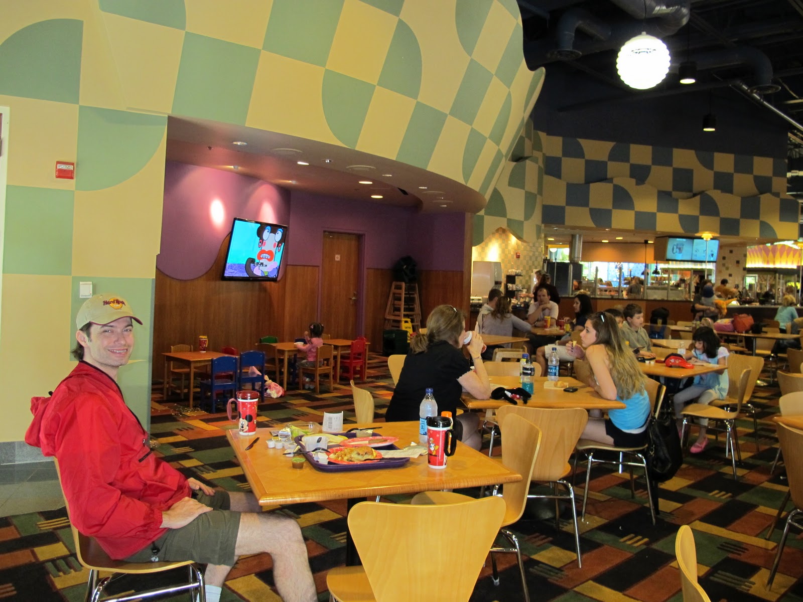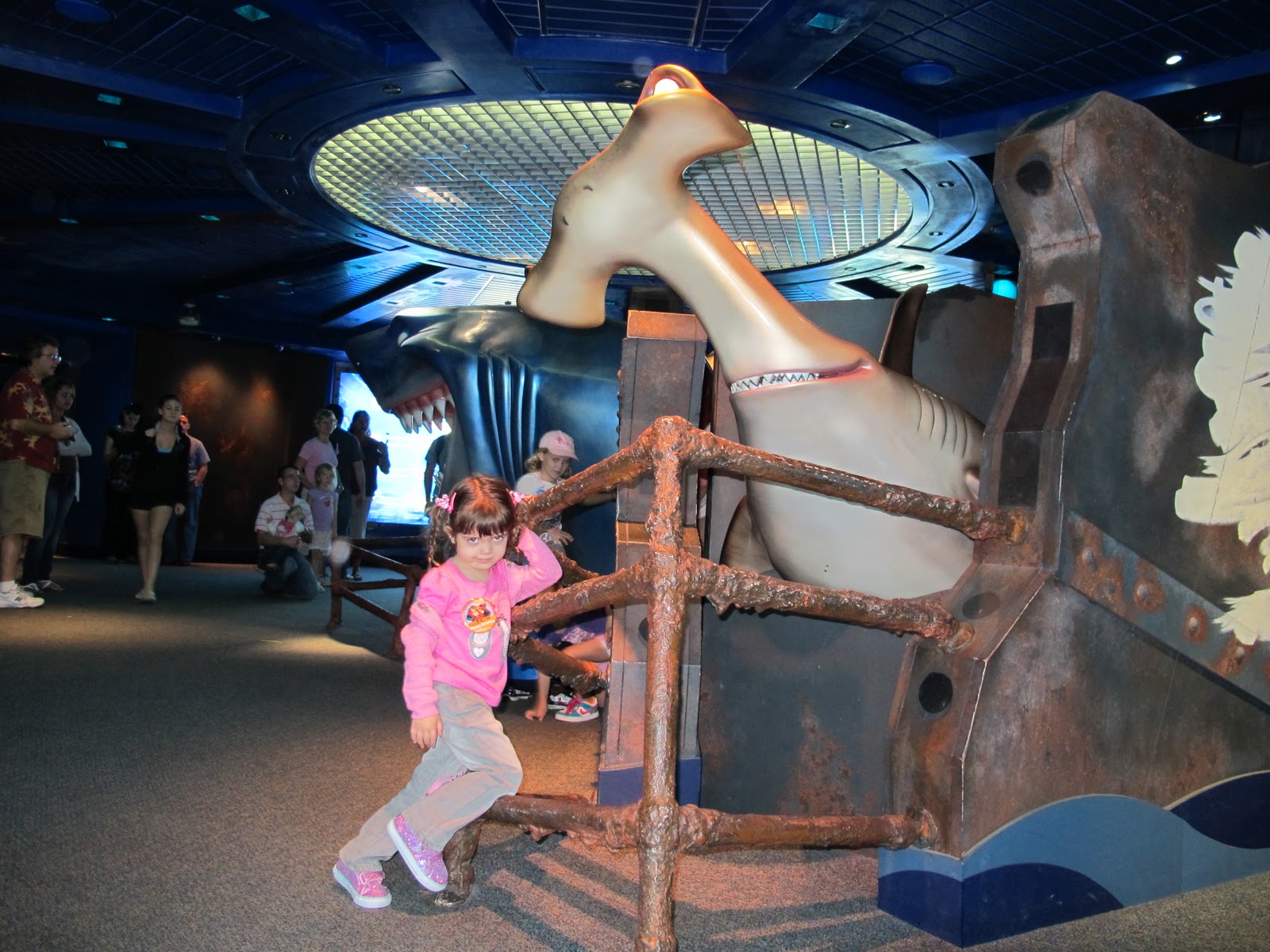 Acabamos voltando pelo Odyssey Center, aquele caminho que passa em frente ao Baby Care Center, para almoçar rapidinho no Electric Umbrella, já que nos primeiros países não tem nada que a Ellerim coma. Este é um restaurante tipicamente americano, com todos os burgers e nuggets tradicionais, e o bom é que tem banheiro dentro do restaurante. Quem tem filhos sabe que eles sempre querem ir ao banheiro quando a comida chega! Depois fomos passear pelos países, um a um. Eu adoro dar a volta ao mundo! Nesse dia a Ellerim não quis pintar o ursinho nenhuma vez, queria só pegar os carimbos. Na Noruega fomos no Maelstrom, mas a Ellerim não gostou muito das partes mais sombrias.