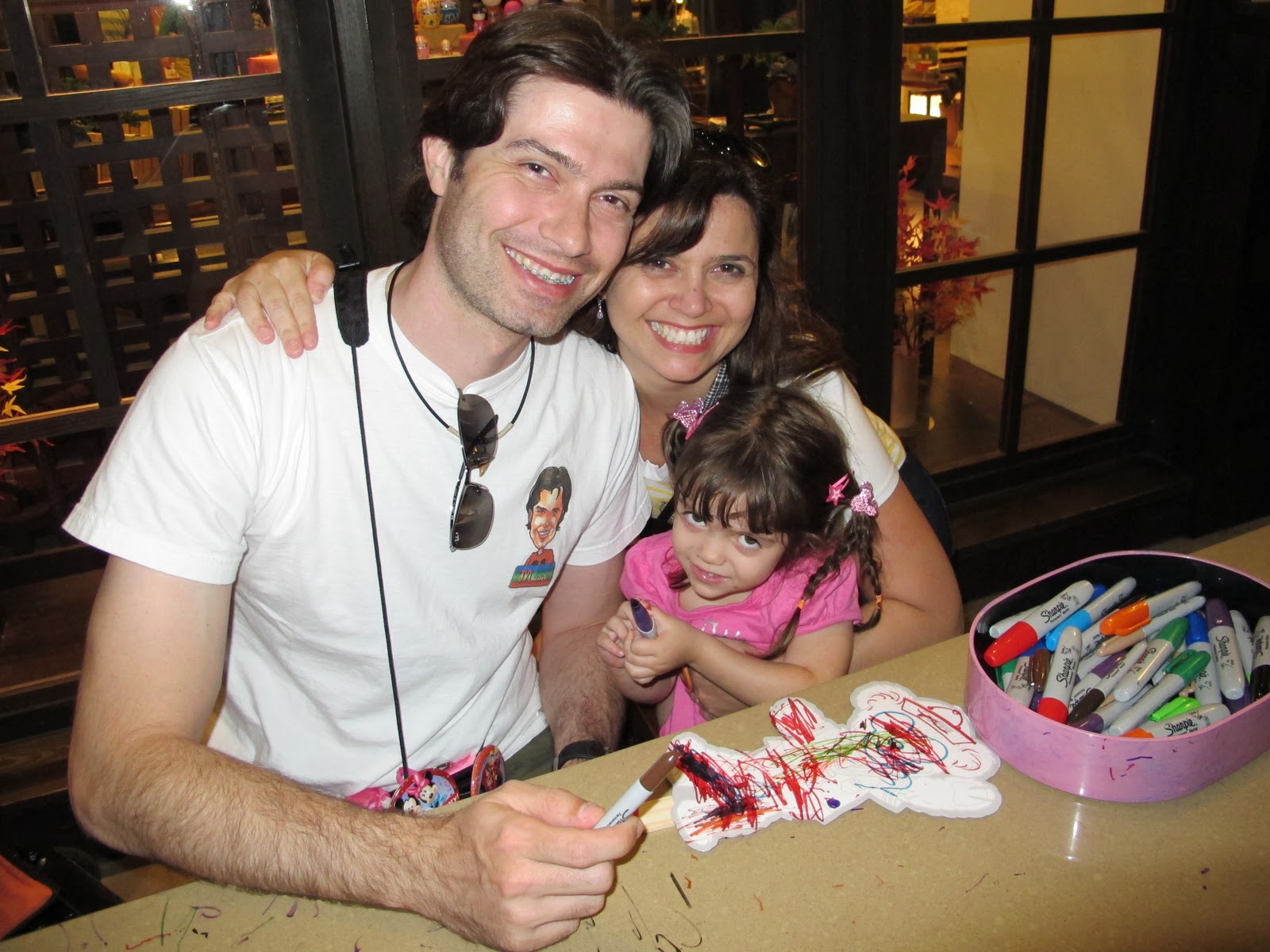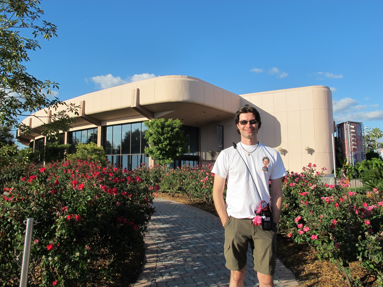 Quando olhamos o relógio, já era super tarde, faltavam uns 40 minutos para fechar o parque, e a gente nem tinha jantado. Paramos rápido no Electric Umbrella de novo (pena, porque eu estava esperando um jantar um pouco mais romântico), pegamos dois sanduiches Angus e fomos comendo no caminho mesmo até o Soarin, que fica bem longe. Chegamos lá bem na hora, e fomos mais uma vez no brinquedo. Pensei que talvez a sensação não fosse ser tão legal (quase nunca é na repetição dos brinquedos), mas foi ótimo do mesmo jeito. Foi muito legal esse passeio, só nós dois. Quando estamos com as crianças, a nossa atenção fica fragmentada, porque a gente não tira o olho das crianças o dia inteiro, mas sozinhos pudemos realmente curtir os detalhes. Eu estava realmente feliz nessa hora, completamente realizada, com aquela sensação de “meu deus, eu realmente estou aqui”. Era nosso penúltimo dia de parque, e último dia de Epcot. Na hora, eu não fazia idéia de que ia voltar tão cedo pra Disney. Então, fomos saindo do parque bem devagar, tentando olhar todos os detalhes, as luzes no chão, as águas dançantes, a bola iluminada, as lojinhas com um milhão de produtos divertidos que são a cara da Disney, tudo simplesmente mágico. É um lugar emocionante, feliz, lindo, It’s my place on Earth!
