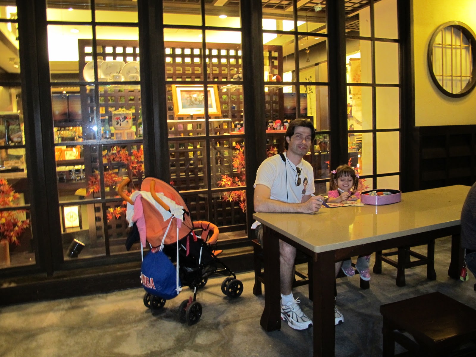 Na China, acabamos parando para assistir o cinema 360º. Ainda faltavam 12 minutos, e não tinha quase ninguém. Mas ficamos por ali mesmo para passear pelo museu ao lado, onde tem as miniaturas do Exército de Terracota, e ainda alguns soldados em tamanho natural e réplicas de vários artefatos. Achei bem legal esse museu, e nunca tinha visto. A Ellerim gostou de ver tudo, mas estava um pouco inquieta. Logo começou o filme, e ela pediu para ficar no meu colo, para ver melhor. A primeira metade ela adorou, mas depois ela disse que já podia acabar. É muito bonito, mas realmente podia ser um pouco mais rápido.