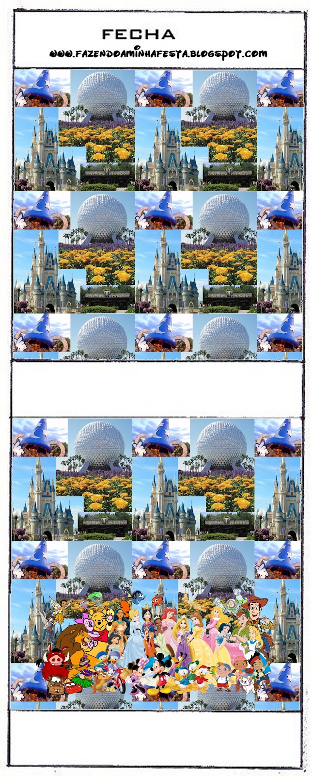 Moldura Convite e Cartão Walt Disney World com Personagens: