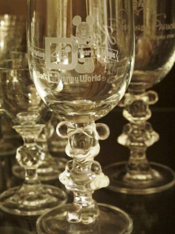 Agora em cada viagem compramos um par de taças de cristal (na Alemanha do Epcot, ou na loja de cristais da Main Street) com nosso nome gravado no atrás. Preferimos as que tem o pé do Mickey e da Minnie!