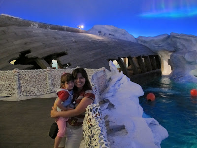 A Ellerim adorou ver a baleia beluga e as morças. Lindos estes animais. O urso polar estava dormindo, e não chegou a mergulhar. Estes observatórios também podemos ver tanto por cima quanto por baixo. E todo o ambiente ali é lindo, imitando uma estação polar de verdade.