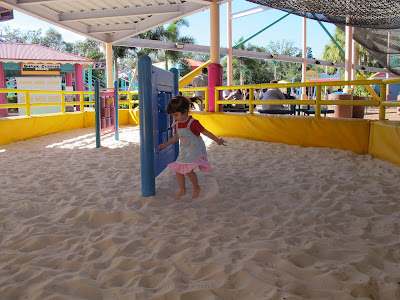 Muito divertido, e acabamos ficando mais de meia hora por ali, e quando vimos, estava em cima da hora do show dos golfinhos. Mas a Ellerim tava muito ansiosa para ir no labirinto e no parquinho de areia, e a Manu queria ir no parquinho molhado, e elas não quiseram ir de jeito nenhum no show. Nossa, fomos dois dias na Sea World e assistimos 1/3 de show… mas tudo bem, desde o início a gente quis fazer uma viagem sem compromisso, para fazer só aquilo que desse vontade na hora. Esse dia estava bem quentinho, e foi muito gostoso ficar ali pelo Samu’s Happy Harbor. Eu tirei o tênis e entrei com a Ellerim no parquinho de areia, e foi uma delícia, e a Rô foi com a Manu no parque molhado.