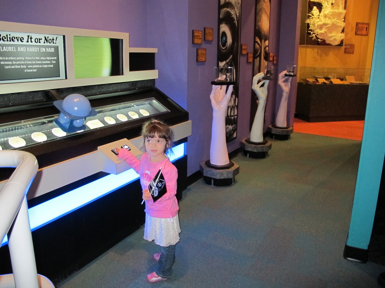 Usamos nosso cupom de $ 2 de desconto por pessoa (o preço normal era $ 18,99, mas a Ellerim não pagou). Também é uma boa diversão, principalmente para crianças um pouco maiores. É um misto de exposição, museu de cera e atividades interativas.