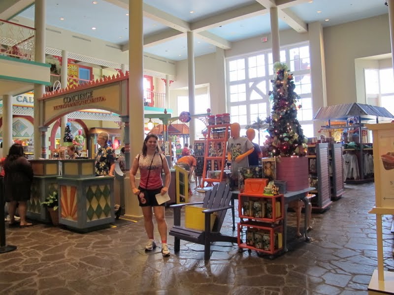 O restante do hotel eu achei legal, mas não fenomenal. Acho que é meio parecido com a parte dos anos 80 e 90 do Pop. É tudo lindo, mas a gente espera mais (como estamos mimados né!). Eu acho que eles deveriam fazer todas as tematizações assim como a do Toy Story, usando personagens que as crianças realmente amem. Parece que o novo hotel Art of Animation vai ser assim, com áreas dos Carros, Pequena Sereia, Procurando Nemo e Rei Leão, ou seja, nenhuma área mais ou menos. Bom, mas na verdade o hotel é lindo, só que eu vi com olhos de comparação, para decidir se numa próxima viagem ficaríamos ali para variar ou voltaríamos ao Pop. E acho que no geral eu prefiro ainda o Pop. Ainda mais que nessa época vimos vários quartos ainda não renovados, e que pareciam bem mais antigos que os do Pop. A duas vantagens que eu achei do All-Star foram o sistema de ônibus que não parece tão cheio, e o clima no inverno, que no All-Star é bem mais quente (o que é uma desvantagem no verão). Antes de conhecer, eu achava que deveria ser bem fácil passar de uma All-Star par ao outro, e que isso seria uma vantagem de ficar ali (poder fazer as refeições ou usar a piscina cada dia em um). Mas acho que na correria do dia a dia isso não é praticável. É muito longe, e tem que passar pelos estacionamentos. Estava quente e levamos o maior suadouro indo de um para o outro. Pior foi ter que voltar depois! Ainda bem que eu tinha levado uma bermuda para trocar pela calça. O Sports deve ser muito legal para quem viaja com meninos. É uma opção legal, já que a maioria das coisas são sempre para as meninas. Mas não achamos muitos atrativos no Music, achamos o menos bonito (porque, sim, também é lindo). Com certeza o mais lindo é o Movies. Mas os três são muito parecidos. Muda só a tematização mesmo. O Mauro achou que é igual, ficar no Pop ou no All-Star, mas eu ainda acho o Pop mais legal… mas não a ponto de pagar mais caro por isso. Ou seja, no final, tanto faz mesmo. Quando terminamos a visita, estávamos muito cansados de caminhar no asfalto pelos estacionamentos pra lá e pra cá. Resolvemos então de desistir do Coronado Springs e ir direto para o Caribbean Beach.