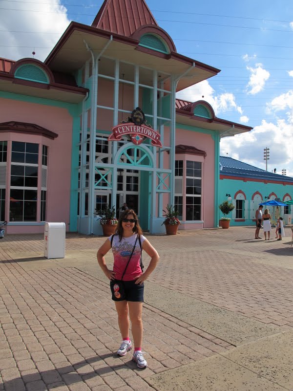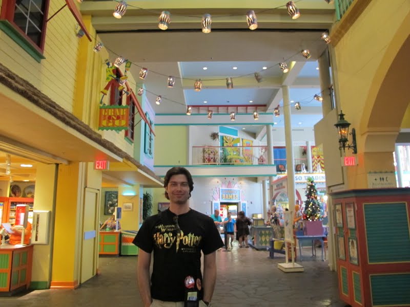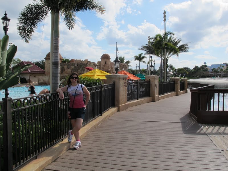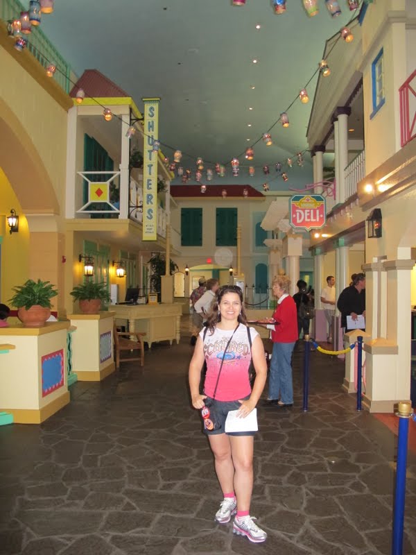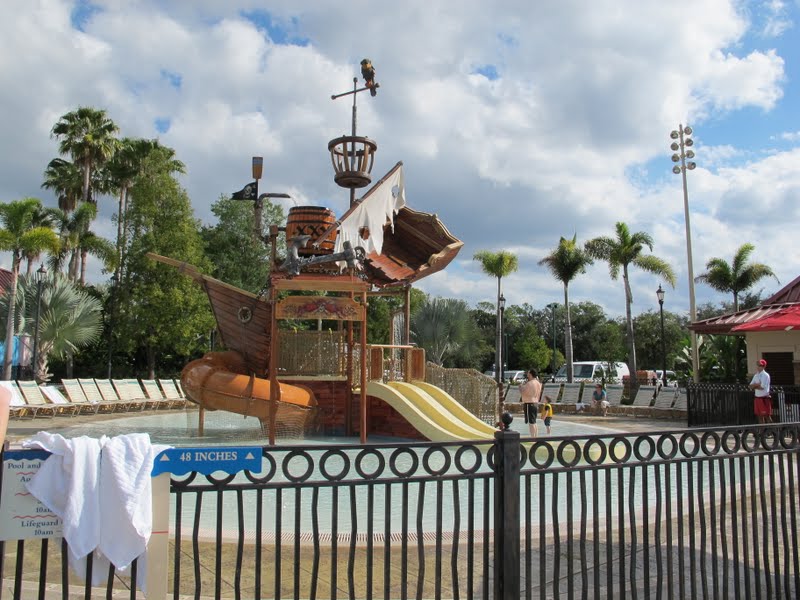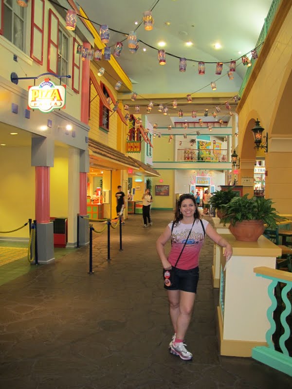 Eu tinha bastante expectativa para conhecer este hotel, porque sempre tive vontade de um dia trocar um Value por um Moderate. A mãe e a Séfora (minha irmã) já ficaram no Port Orleans e dizem que é mais legal ficar no Pop. Mas eu queria ver por mim mesma. O hotel tem um lago gigante, e ao redor ficam várias ilhas do Caribe (que são as áreas do Hotel): Jamaica, Trinidad, Martinica, Barbados, Aruba. Bem na entrada, paramos no Lobby (Custom House). Eu achei estranho, porque era bem pequenininho, e era só o Lobby… ou seja, não tinha nem Arcade (fliperama) nem restaurante. O atendimento, claro, foi ótimo, e já pegamos um mapa. Fomos seguindo de carro para procurar a piscina principal e o restaurante Geral, Quick Service, onde fica também a lojinha (Old Port Royale).
