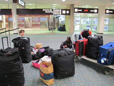 Coitado do Mauro, ficou arrumando tudo até às quatro horas da manhã, e só teve tempo de tomar um banho para pegarmos o ônibus para o aeroporto às cinco!
