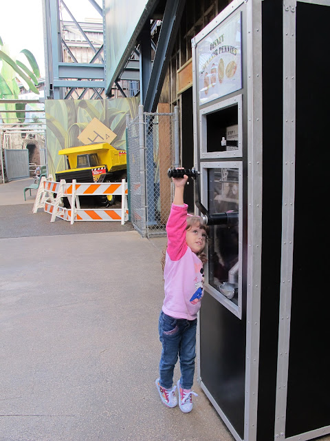 Você coloca as modedas nas maquininhas, que estão espalhadas por todos os parques e atrações, escolhe uma das opções de imagem, e faz a moedinha.