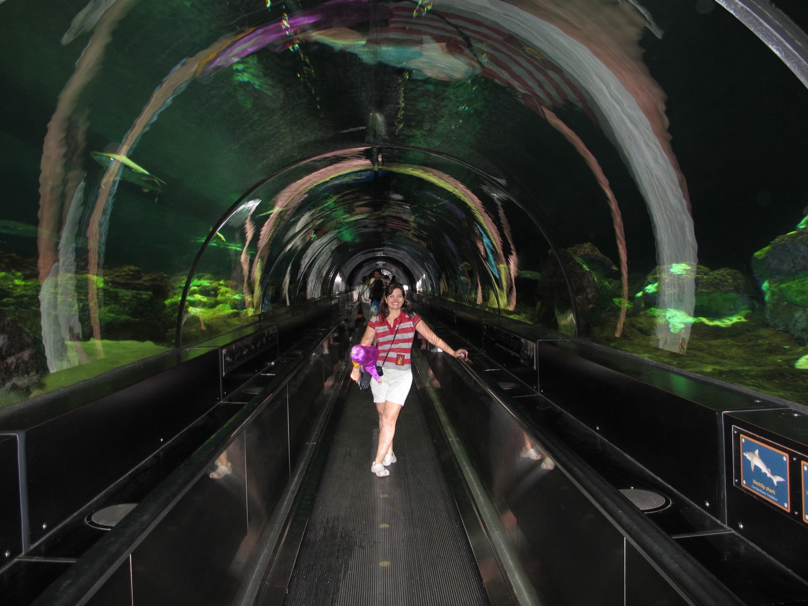 Depois, eu e a Rô deixamos as meninas com o Mauro no labirinto (coitado) e fomos para a Manta (iupiiiiiii!!!!). Gente, tudo de bom essa montanha russa. A fila já tem um aquário espetacular (tem um observatório deste aquário por fora, para quem não quiser ir na montanha russa). A fila estava vazia (mas vazia mesmo, a gente chegava e já ía pro carrinho, só tinha fila para os primeiros lugares). Primeiro a gente senta na cadeira (suspensa por cima) normalmente, e então colocamos a barra de segurança nos ombros, daquelas de descem, e então UAU, a cadeira vira e a gente fica completamente de barriga pra baixo, suspenso! A gente já começa a rir nessa hora. Do nosso lado estavam dois brasileiros, pai e filha. Eu não sabia muito o que esperar, mas a sensação foi maravilhosa! É uma montanha russa muito, mas muito gostosa e confortável. Adorei, e resolvemos ir mais uma vez. De novo um brasileiro de cada lado (uma esposa que o marido não teve coragem, e um marido que a esposa tinha medo). voltamos para o parquinho, mas mesmo sem fila, contando a ida e volta, levamos uma hora. Quando chegamos o Mauro ainda estava quase se matando correndo atrás das duas no labirinto (rsrsrsrsrsrs). Então, deixamos a Ellerim com a mãe e a Rô no parquinho, e fomos embora do parque, porque tínhamos o jogo de basquete. Fomos andando bem rápido, e tentei convencer o Mauro a tentar a Manta, mas não teve jeito (agora ele se arrepende de não ter ido). Passamos então uma última vez no Shark Encounter (primeira vez que passo nesse aquário completamente vazio, foi demais), e eu queria passar nos pinguins, mas o Mauro vetou por causa do horário (snif).