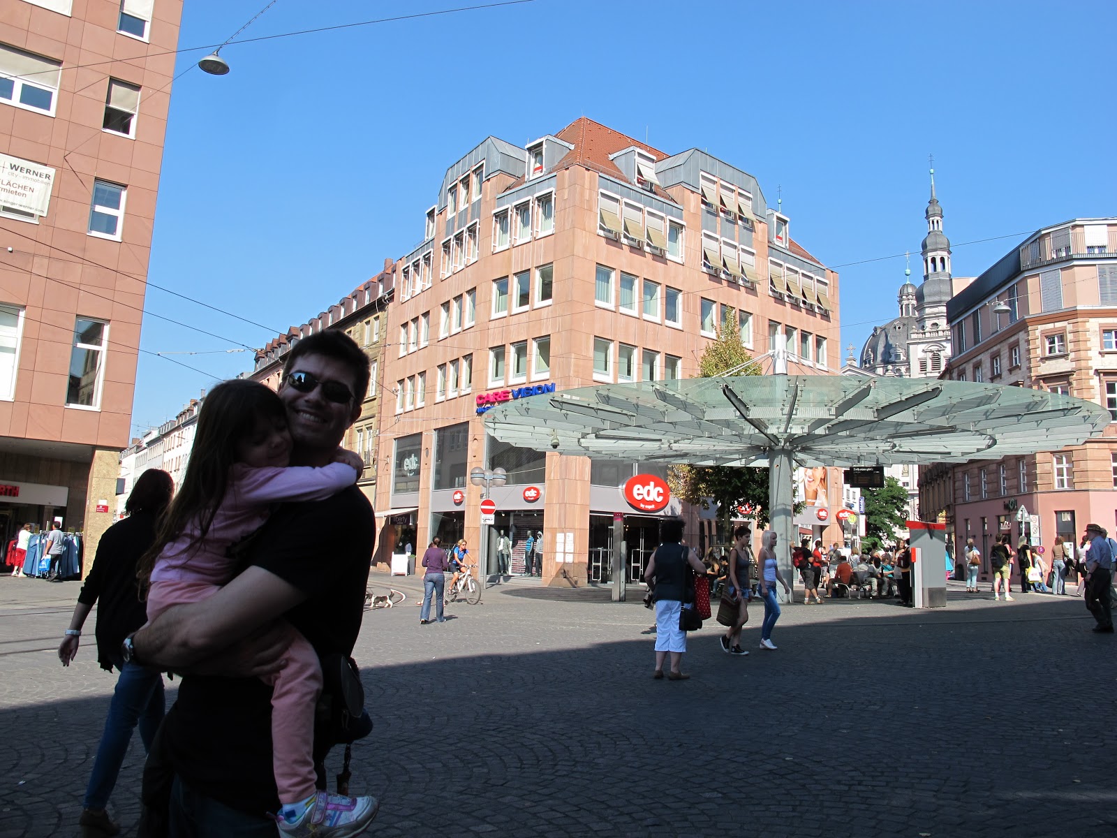 Bom, não convencidos (e mortos de fome) saímos para ter certeza, porque no caminho vimos alguns barzinhos abertos. Mas não é que todos estavam fechando, e já com a cozinha fechada mesmo! Não sei se é lei, mas na Alemanha todos os restaurantes fecham as cozinhas às onze horas, e realmente não adianta implorar! Nossa, fiquei passada. Não sabíamos o que fazer. E a Ellerim, tadinha, acho que estava tão cansada que nem reclamava de nada.