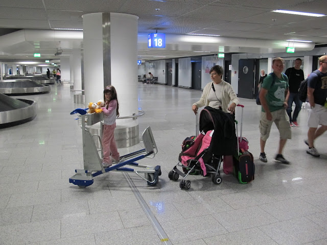 Chegamos no aeroporto passando das oito horas (por causa da uma hora a mais no fuso em relação à Portugal) e fomos direto buscar as malas, pois dentro da Europa não tem mais alfândega. Pegamos aqueles carrinhos maravilhosos (em outro post vou falar sobre como pegar os carrinhos, e como se recebe de volta os 2 Euros de depósito).