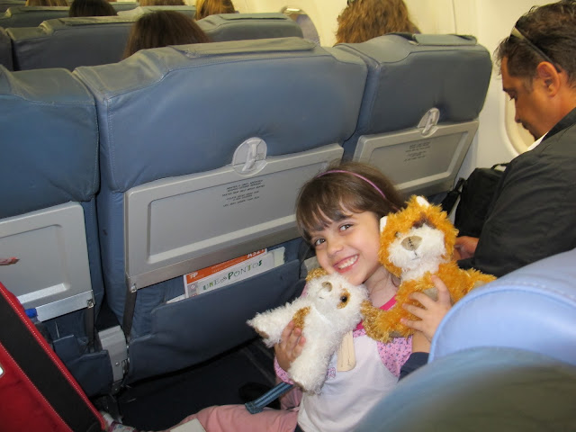 | Ellerim, feliz com seus bichinhos de pelúcia comprados nas lojas do free shop de Lisboa |