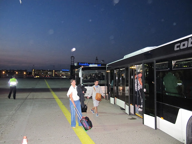 | Ônibus entre o avião e a ala de desembarque em Frankfurt |